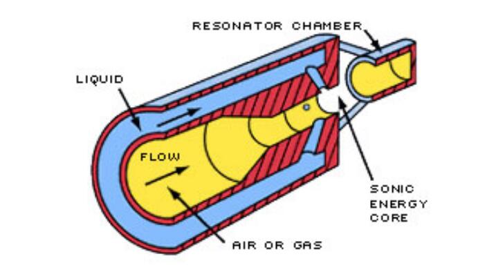 干霧抑塵裝置是由壓縮空氣驅動(dòng)聲波震蕩器,通過(guò)高頻聲波的音爆,作用在噴頭共振室處將水高度霧化,產(chǎn)生10µm以下的微細水霧顆粒(直徑10µm以下的霧稱(chēng)干霧)噴向起塵點(diǎn),使水霧顆粒與粉塵顆粒相互碰撞、粘結、聚結增大,并在自身重力作用下沉降,達到抑塵的作用。