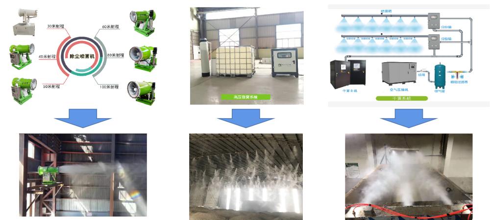 根據企業(yè)或堆場(chǎng)的無(wú)組織排放的實(shí)際情況,利用除塵噴霧機、噴淋系統等揚塵控制設備因地制宜的選擇合適的降塵、抑塵方案。揚塵控制設備具有遠程控制功能,可通過(guò)集中控制平臺進(jìn)行科學(xué)管理和聯(lián)動(dòng)控制,做到智能準抑塵。既提升了治理的準度,又提高了治理效率,同時(shí)還避免治理資源的不必要浪費。