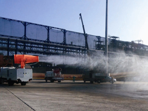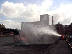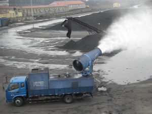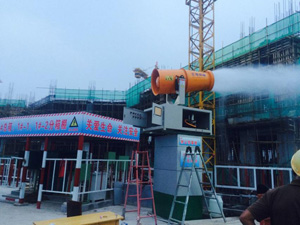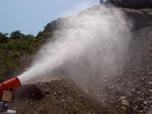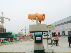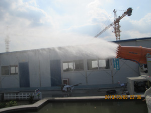 降塵炮系統是一種經(jīng)過(guò)特殊設計,能夠實(shí)現將均勻連續混合物(水,空氣,添加劑)噴射超遠距離的專(zhuān)利產(chǎn)品,成霧水滴尺寸均勻可控,噴射流指向性。