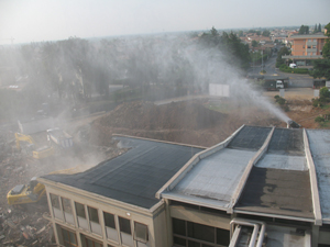 風(fēng)送式除塵噴霧機是一種經(jīng)過(guò)特殊設計,能夠實(shí)現將均勻連續混合物(水、空氣、添加劑)噴射超遠距離的專(zhuān)利產(chǎn)品,成霧水滴尺寸均可控,噴射有指向性。
