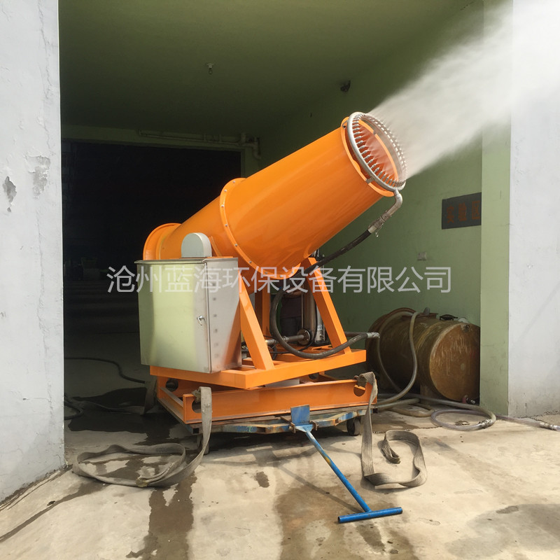 霧炮采用高壓水泵和 殊噴嘴將水霧化成直徑約10~200μm的水霧,通過(guò)高性能的遠射風(fēng)機將水霧送到粉塵集中處,水霧與粉塵結合、吸附成團,在重力的作用下沉降到地面,達到有效降塵的效果。移動(dòng)便捷,隨開(kāi)隨走,是解決露天粉塵無(wú)組織排放和除霾 有效的產(chǎn)品。