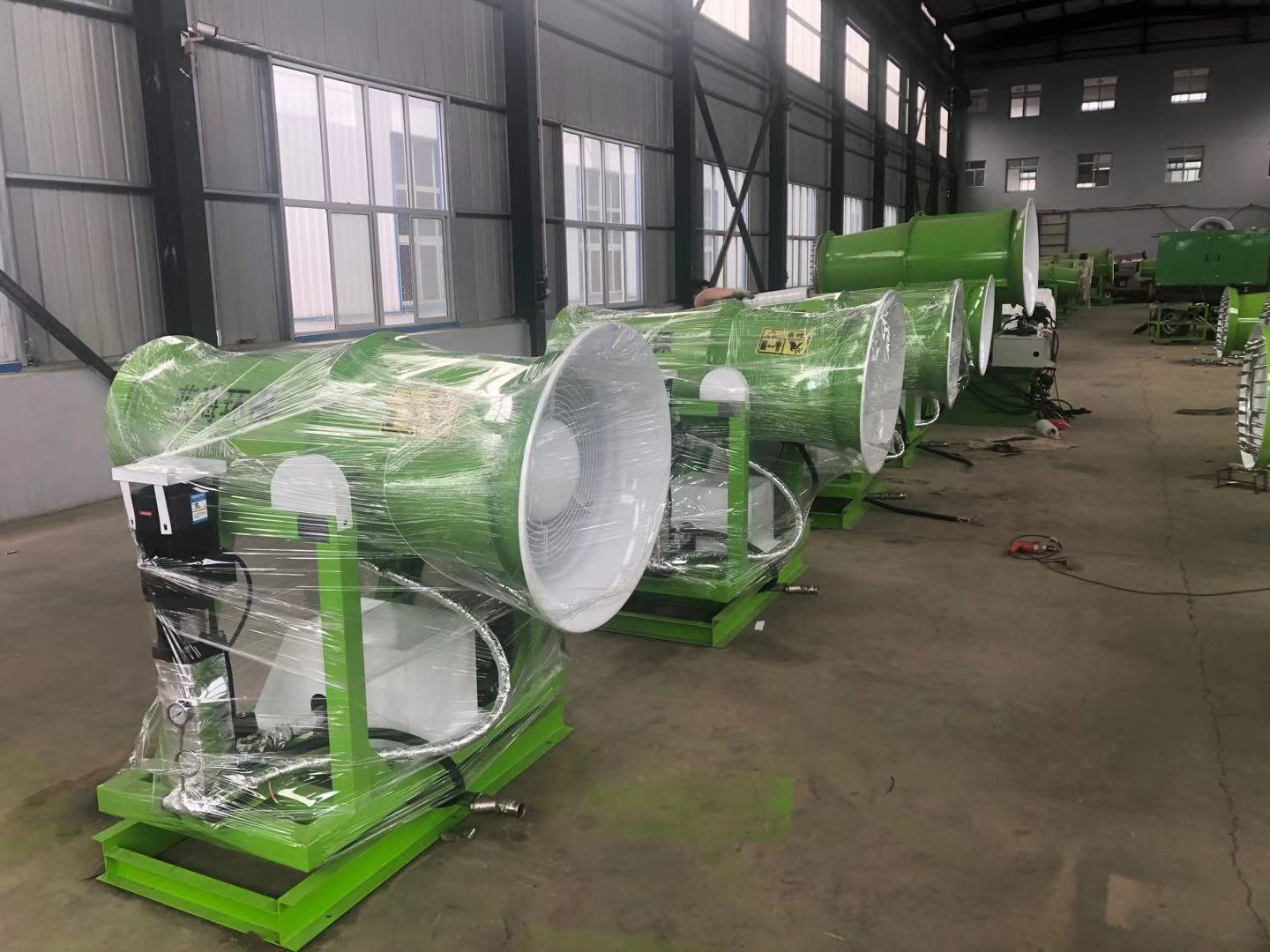 1.功率小、能耗低;在對噴嘴多年的研究基礎上對霧炮進(jìn)行了反復的試驗研究,采用了風(fēng)機變頻啟動(dòng),PLC控制,液壓轉動(dòng)。在同等功率下噴霧設備噴的 遠、耗能 低、性能跟穩定。