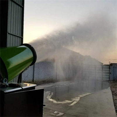 霧炮機主要由風(fēng)筒組件、俯仰調節裝置、水平旋轉組件、高壓噴霧水系統以及電控系統組成。霧炮機的原理是灰塵可以通過(guò)與水結合而聚集和增加,使得細小的灰塵通過(guò)相等直徑的水滴的小胡作用,降低水面的張力,并使灰塵顆粒和水霧凝聚成一團,在重力額作用下,它落到了地面,當霧粒接近顆粒大小時(shí),減塵效果 ,噴霧器通過(guò)高壓泵對水加壓,一定壓力的高壓水通過(guò)高壓霧化噴嘴產(chǎn)生直徑接近塵粒的水霧,通過(guò)大功率風(fēng)扇將水霧送到除塵區域,制成水霧和霧氣,灰塵顆粒迅速附和凝結,在自身重力下沉降,達到降塵的目的,還具有加濕和冷卻功能。